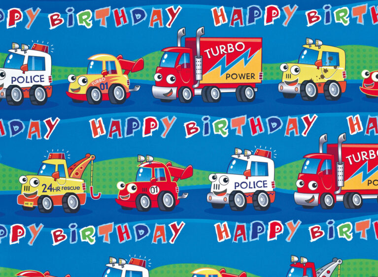 Children’s Flat Gift Wrap Sheets Trucks & Cars