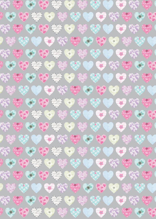 Flat Gift Wrap Sheets Hearts on Silver