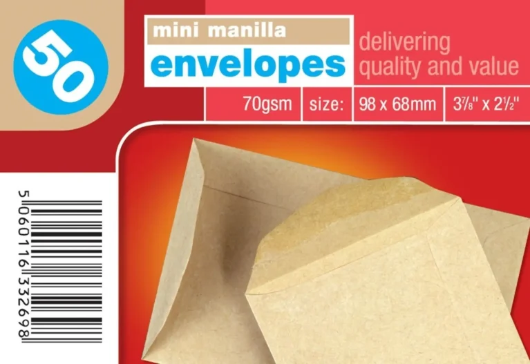 Manilla Mini Envelopes 98 x 68mm (3.8 x 2.5″) 50’s