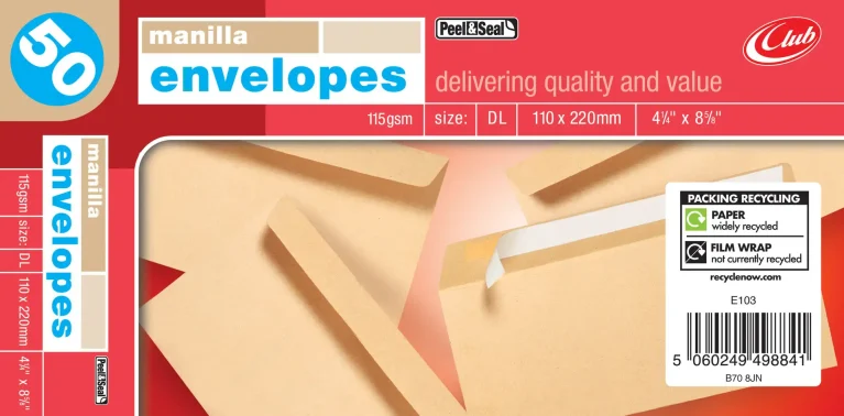 Manilla Peel & Seal Envelopes 110 x 220mm (DL)