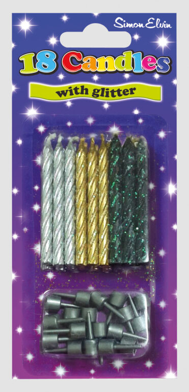 Cake Candles & Holders Asstd. Glitter 18’s